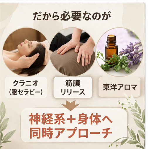 「クラニオ × 筋膜リリース × 東洋アロマ」